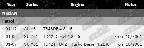 This pair of tie rod ends suit Nissan Patrol fitted with TB48DE, TD42, TD42T and TD42Ti Turbo Diesel I6 engines.
