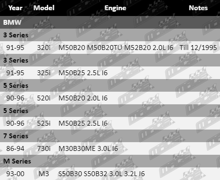 These ignition coils suit BMW vehicles fitted with M50B20, M52B20, M50B20TU, M50B25, M30B30ME, S50B30, and S50B32 I6 engines.