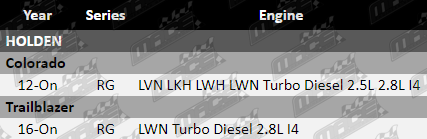 This filter service kit suits Holden vehicles fitted with LVN, LKH, LWH and LWN Turbo Diesel I4 engines.