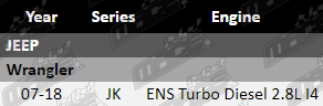 This filter service kit suits Jeep Wrangler fitted with the ENS Turbo Diesel I4 engine.