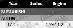 Browse these categories as well: Throttle Controllers, Mirage, LA, I3, 3A92 1.2L I3