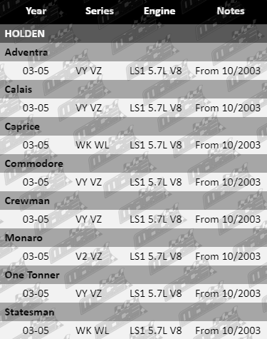 Mace lifter replacement kit comprises of hydraulic roller lifters, lifter trays, head gaskets and head bolts. This kit suits Holden Commodores and similar platforms fitted with the LS1 from 10/2003.