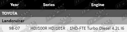 This pair of front upper ball joints suit Toyota Landcruiser fitted with the 1HD-FTE Turbo Diesel I6 engine.