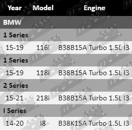 These ignition coils suit BMW vehicles fitted with B38B15A and B38K15A I3 engines.