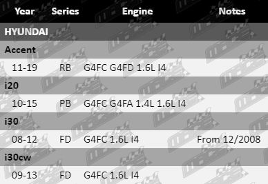 These ignition coils suit Hyundai vehicles fitted with G4FA, G4FC, and G4FD I4 engines.