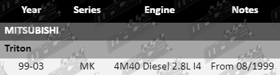 These glow plugs suit Mitsubishi Triton fitted with the 4M40 Diesel I4 engine.