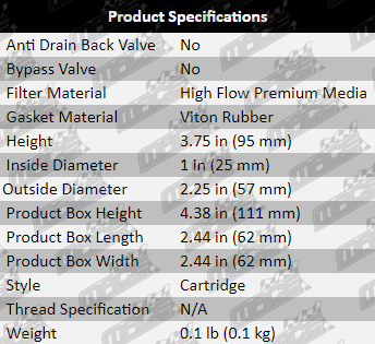 • 1 X Cartridge oil filter