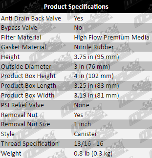 • 1 inch exposed nut designed for easy oil filter removal.