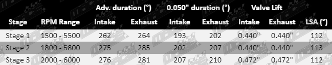 This Crow Cams very mild cam provides an exceptional torque curve. Given the powerband begins quite low in the rpm range, it has great towing capabilities and a strong pull off the lights. Valve-train doesn't require upgrading unless the motor will be exposed to constant heavy abuse. Expect gains of 15-20kW depending on your car's current configuration.